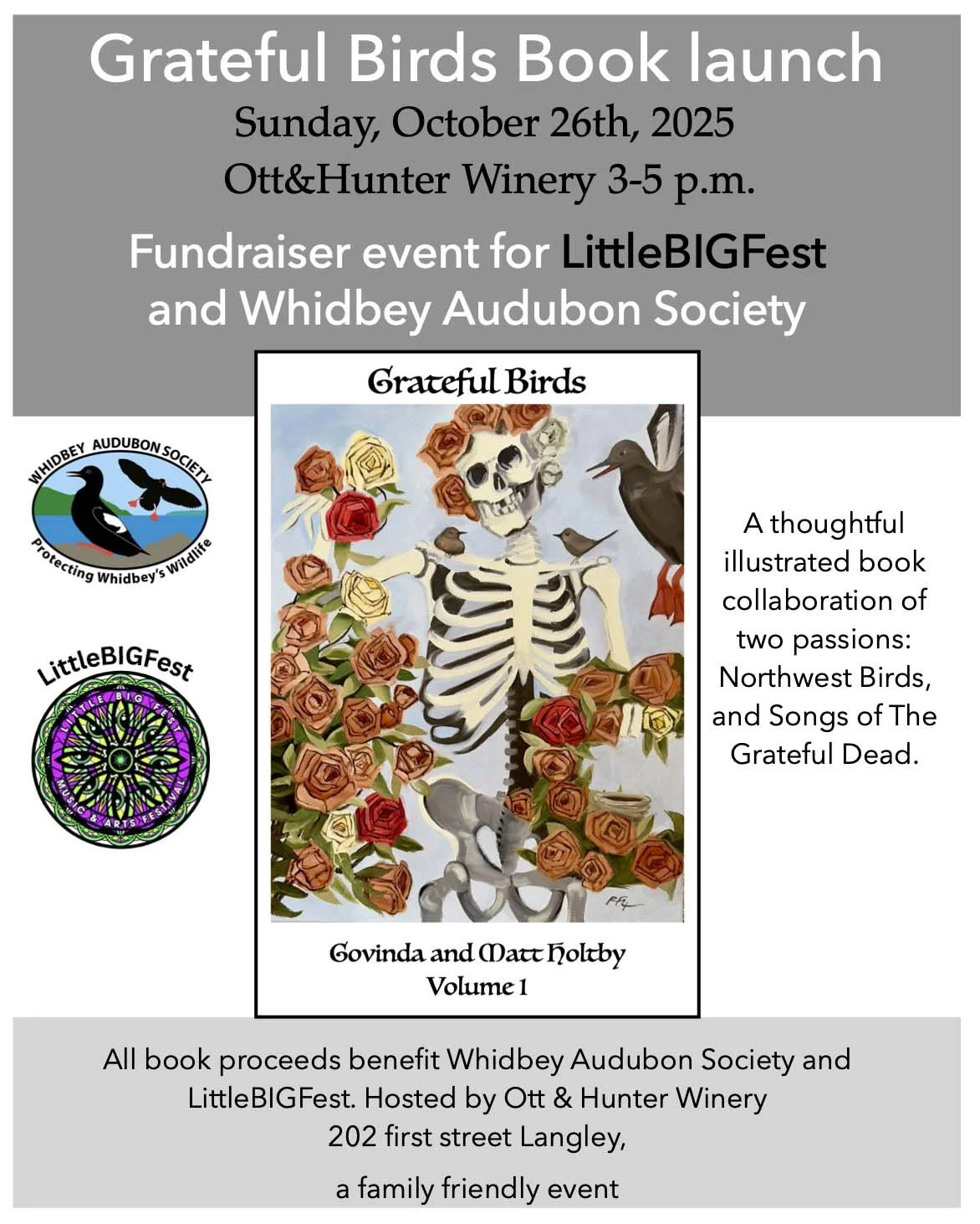 All proceeds from Grateful Birds will be donated to South Whidbey Audubon and LittleBIGfest.