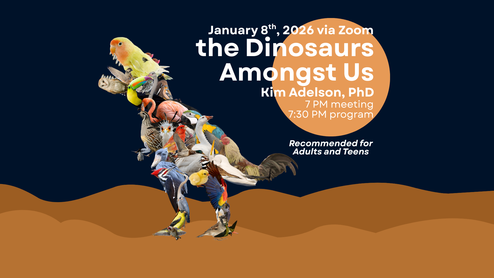 Watch a recording of our January 8th program featuring Kim Adelson, PhD, about the structural and behavioral similarities between birds and the dinosaurs they evolved from!