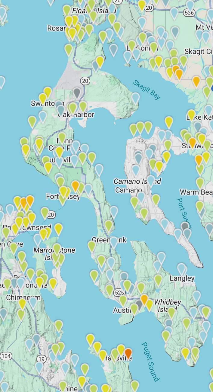Sightings should generally be on Whidbey Island or surrounding waters.